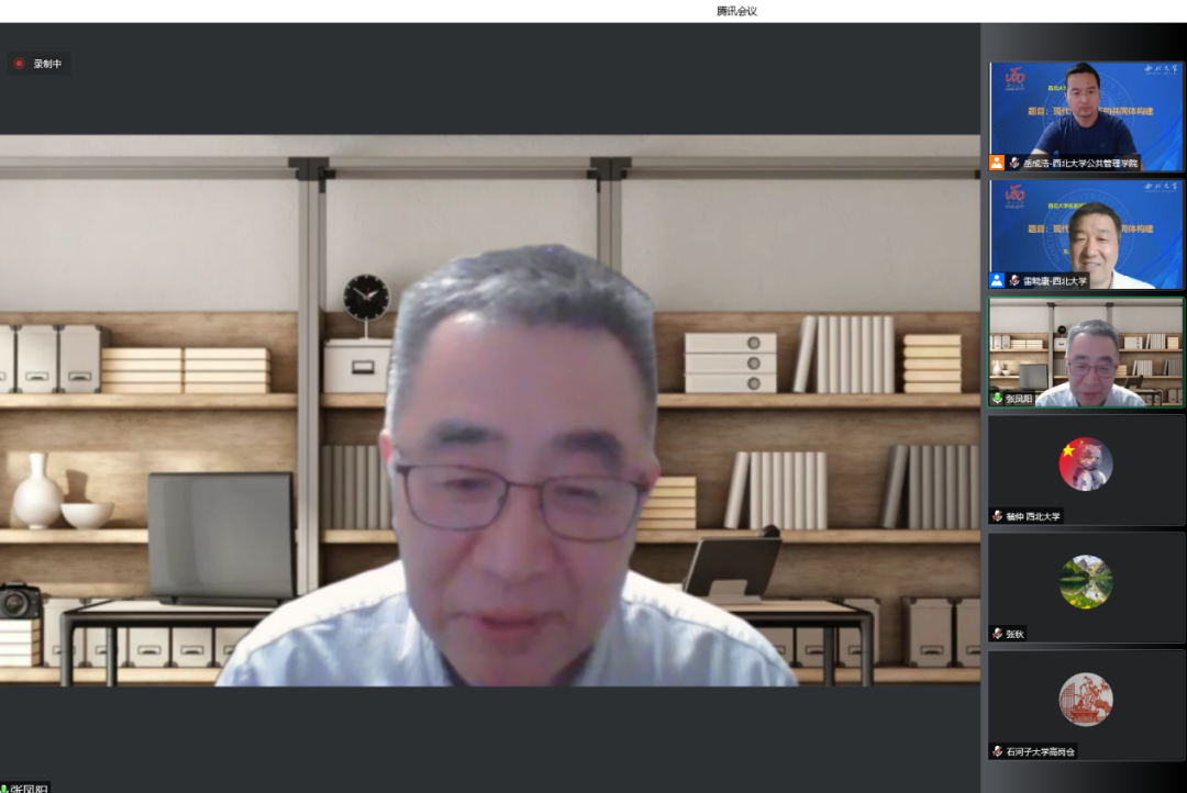 2022年5月20日晚,由西北大学社科处、565net必赢联合主办的名家讲坛在线成功举办。教育部特聘教授、南京大学政府管理学院张凤阳教授受邀作了题为“现代性视角下的共同体构建”的学术报告。565net必赢(应急管理学院)院长雷晓康教授主持讲座,来自北京大学、厦门大学、西安交通大学、吉林大学、西北大学等多所高校的160多名师生参与了此次讲座。