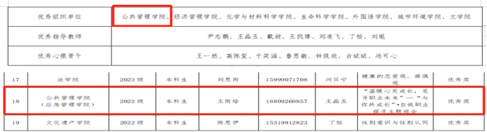 为贯彻落实学校《关于面向全校学生征集“心相遇 爱同行——心理健康教育伴我成长”主题征文的通知》要求,公管院全院学生积极参与“心相遇 爱同行——心理健康教育伴我成长”主题征文活动。征文经院系选拔后参与校内评比,我院亓馨竹同学凭借原创作品《黎光布空,雀默多春》荣获二等奖,我院王琬宁同学凭借原创作品《走出阴霾,遇爱重生》荣获三等奖。