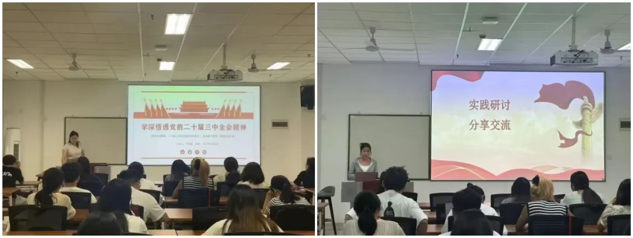 学院各党支部、团支部、班级、学生组织与社团分别以线下线上相结合的形式开展系列重要精神集中学习会,深入学习贯彻习近平新时代中国特色社会主义思想、党的二十届三中全会精神、习近平总书记五四重要寄语,继续深入学习党的理论政策,增强广大学生党员学习的积极性、主动性,深刻把握党的政策精髓与核心要义。