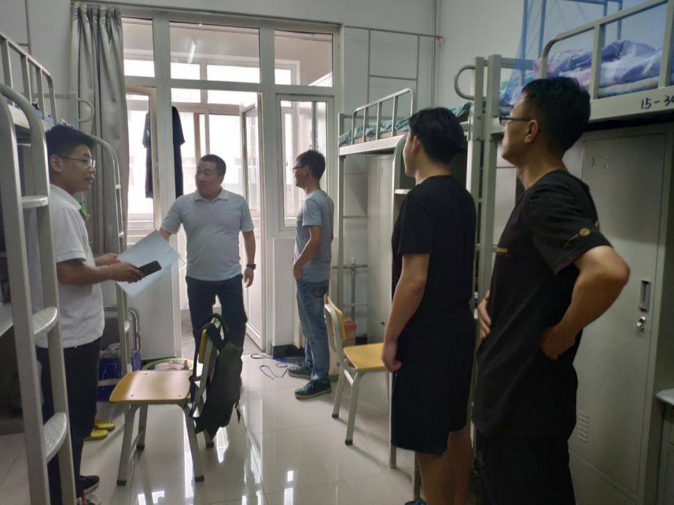9月4日下午,565net必赢院长曹蓉、副院长雷晓康、学工办辅导员杨嘉仪、苏林与研究生会的同学一起到新生宿舍进行了走访活动。