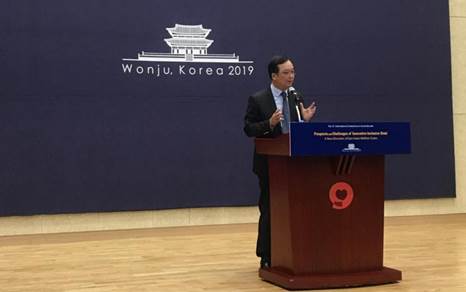 在闭幕式上,中国社会保障学会社会救助分会会长、南京大学教授林闽钢代表中方讲话,他对韩国中央大学、国民健康保险公团等全体会议工作人员表示衷心感谢,对会议取得的丰硕成果给予了高度评价,并期望明年的论坛筹备顺利。