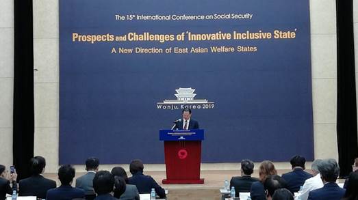2019年9月7-8日,由韩国社会政策学会、中国社会保障学会、日本社会政策学会联合主办的第十五届社会保障国际论坛在韩国原州市举行。本届论坛的主题为“创新、包容型国家的前景与挑战:东亚福利国家的新方向”。韩国政府副总理俞银惠、中国社会保障学会会长郑功成、日本大分大学教授阿部诚、英国约克大学教授哈德森为本次论坛作主旨报告。来自中国、韩国、日本、英国、法国等国近百所高校以及国际劳工组织、韩国卫生与福利部、韩国教育部、国民健康保险公团等机构的100多位专家学者出席会议。民政部政策理论研究基地合作单位,西北大学565net必赢雷晓康教授、翟绍果教授出席本次会议。