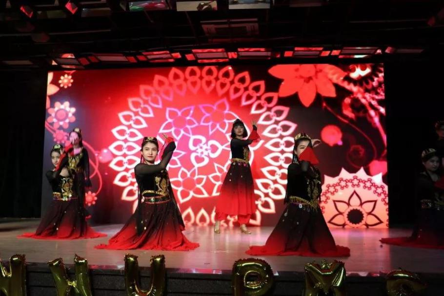 少数民族的舞步跳响迎新晚会的开场