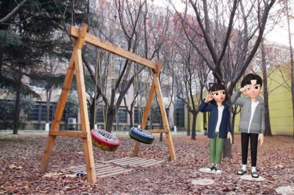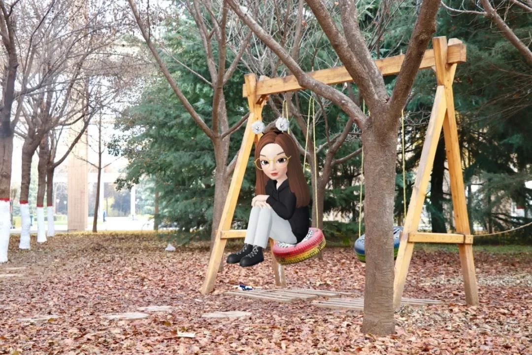下课后,经过公管院楼前的秋千