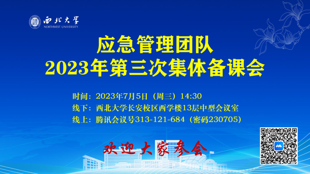 西北大学应急管理学院2023年第三次集体备课会于7月5日下午以“线上+线下”形式举行。自从2021年9月以来,应急管理团队已完成应急管理本硕人才培养方案中33门专业课程的说课工作,其中,本科生课程22门,研究生课程11门。