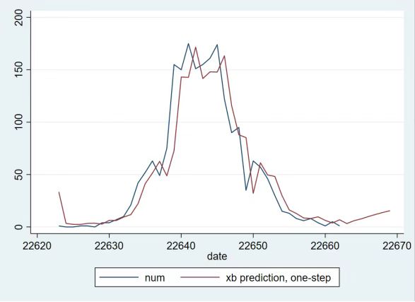 在图3中,右边部分的红线走势就是未来7天的西安确诊病例数量走势,可以发现,红线稍微上升,上升幅度不大,基本不会超过15例。由此可见,在未来一周内,西安确诊病例数量不会大幅上升,西安疫情已经进入向好时期;同时,红线上翘意味着西安确诊病例数量仍有上升风险,需要继续采取必要措施予以防控,不可掉以轻心。